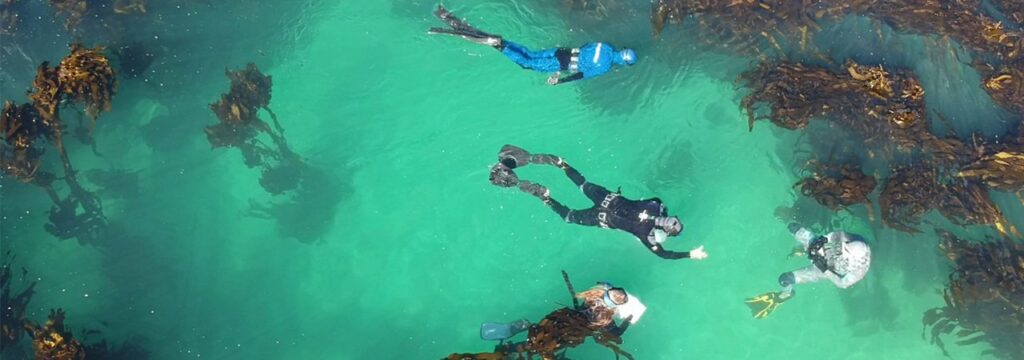 This is a beach entry, so no boat is required and the snorkelling is no more than 50 meters from the coast. This experience is great for families and people new to snorkelling. For the more adventurous you can join a SCUBA or free dive survey amongst the ocean forest of kelp. This is the same stretch of coastline where the award-winning Netflix documentary, My Octopus Teacher, was filmed.